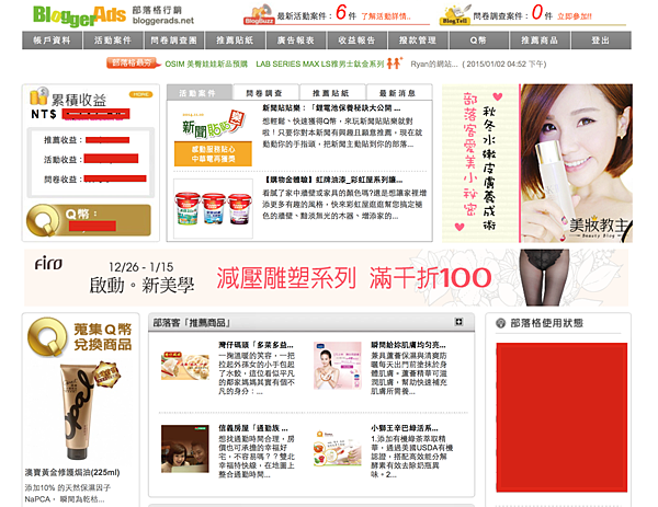 我在部落格裡面也有加入BloggerAds部落格行銷的廣告