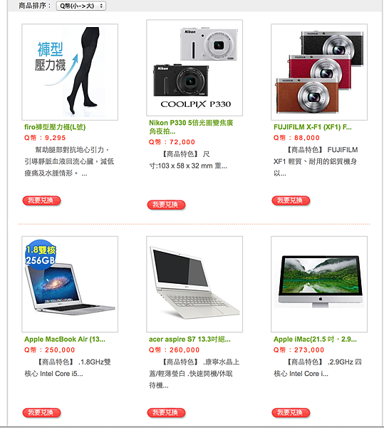 希望9295~72000點的中間可以多一點兌換的商品啦